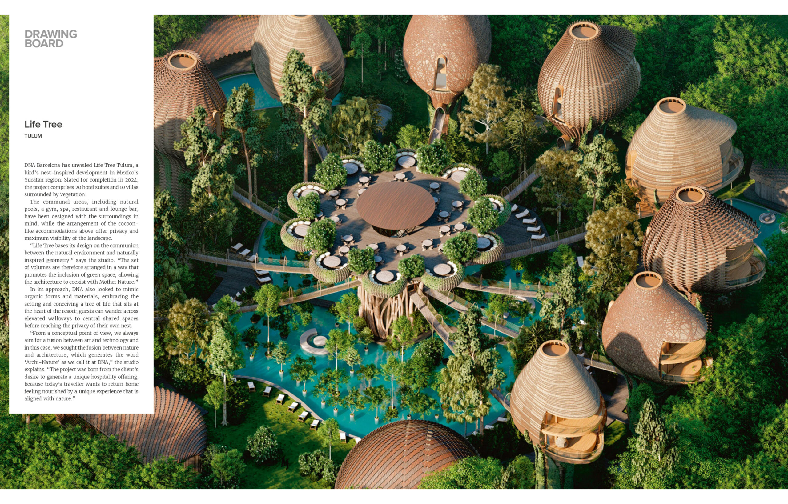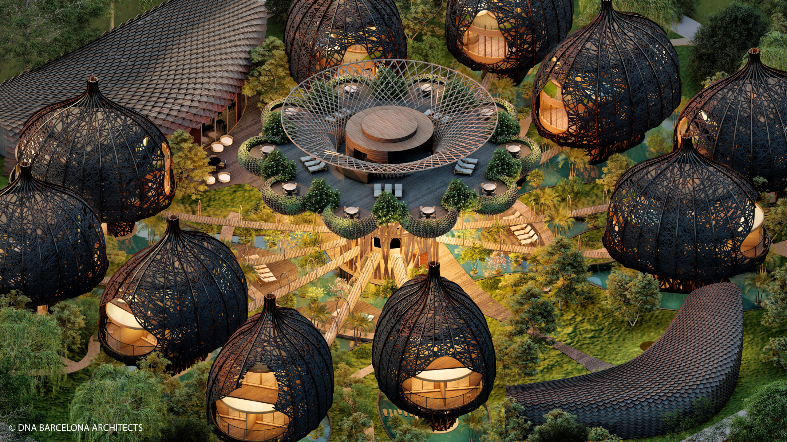 The “Life Tree” in Tulum was born from the clients desire to generate a new experience. From a conceptual point of view, in DNA we always aim towards the fusion between art and technology and in this case, we sought the fusion between nature and architecture, which generates the word, as we call it in DNA, “Archi-Nature”. In this way, we take inspiration from the bird’s nests, and from them our design process in DNA begins.