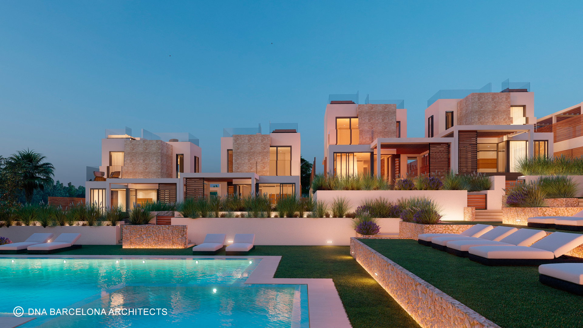 The project stands for the exoticism of the Ibiza Island, an easy access to the beach, a very pleasant climate throughout the year, as well as the luxury and comfort living offering integrated luxury community spaces, private ecological gardens, terraces, and chill out areas, exterior areas with autochthonous vegetation and sea view, thus allowing the interaction between Nature & Human.
