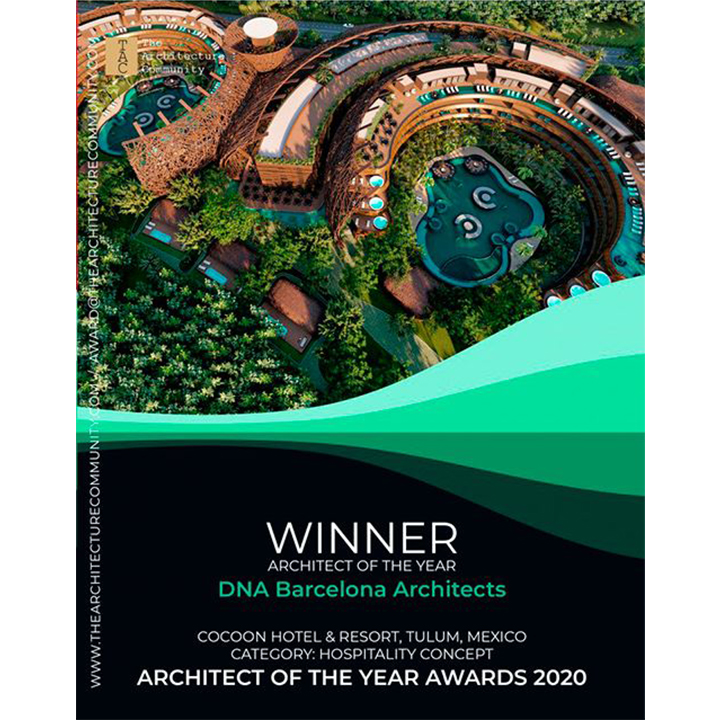 DNA unveils “Cocoon Hotel & resort”, Tulum, Mexico– a new concept of eco-tourism, and a great opportunity of connection with Nature, Community, Ourselves, inspired by the sea and the exotic forest. The project consists of 46.181 m2 offering 3 residential and 2 hotel buildings “COCOON” with 204 apartments and 167 rooms as well as 16 private villas.