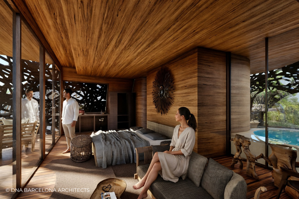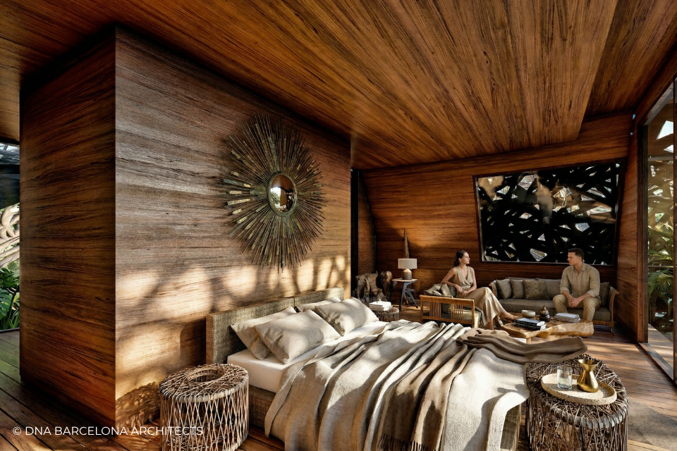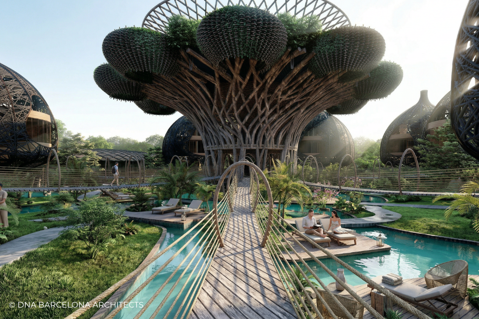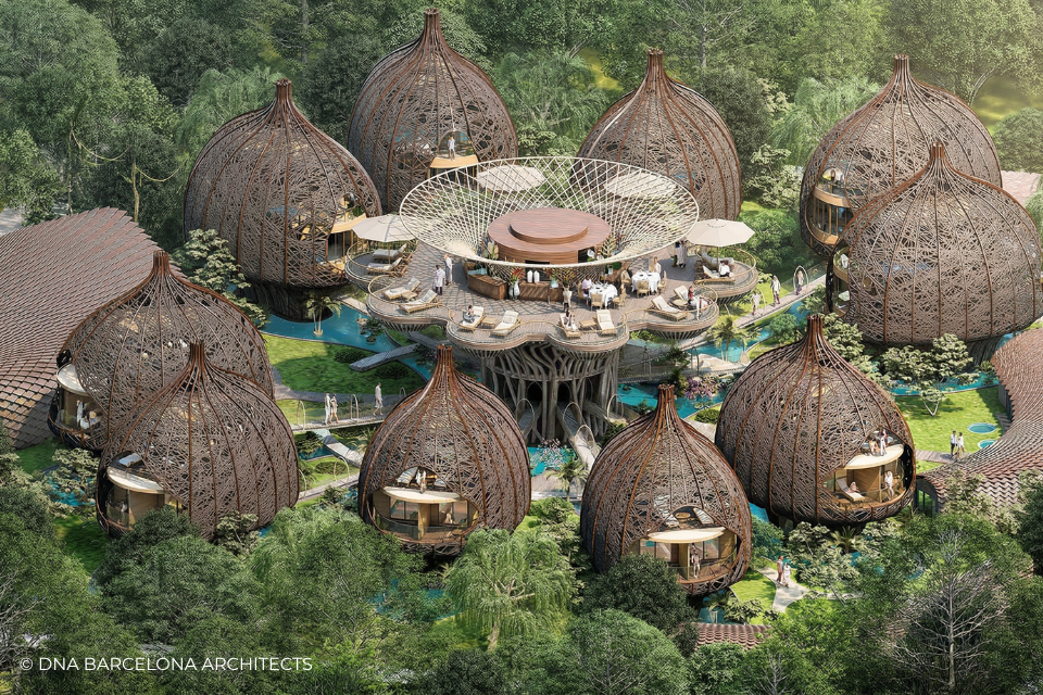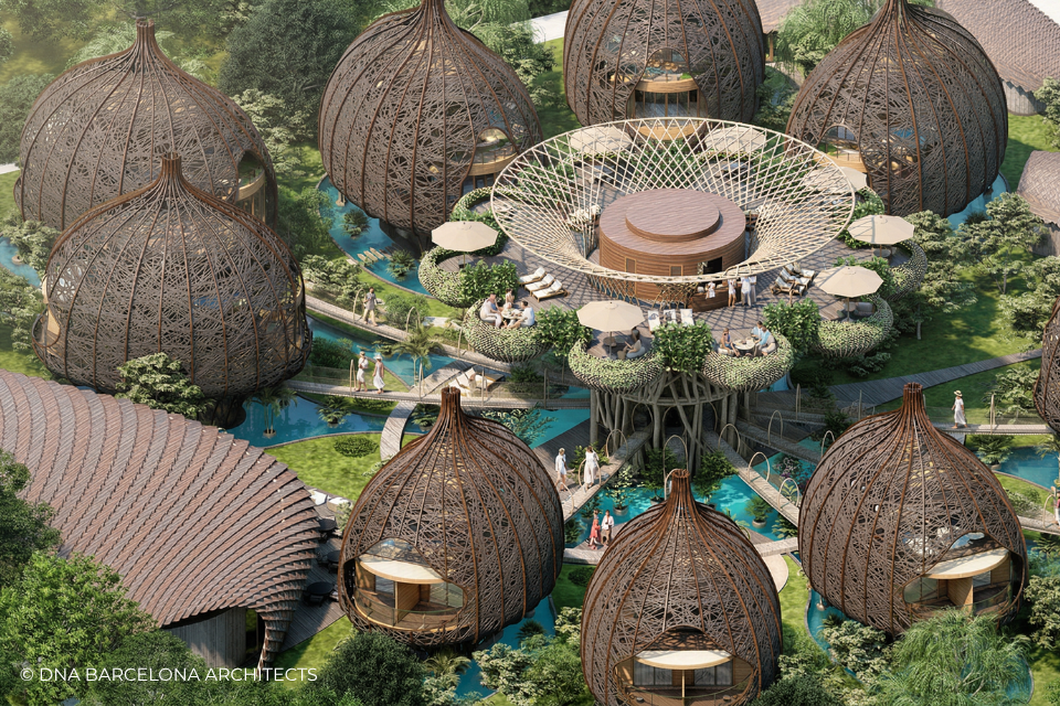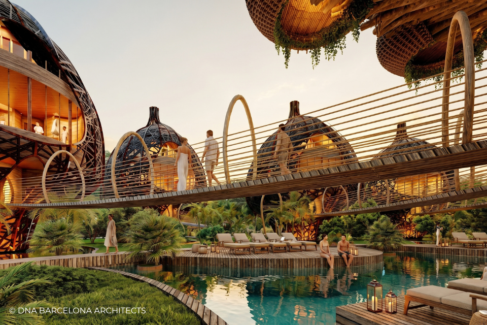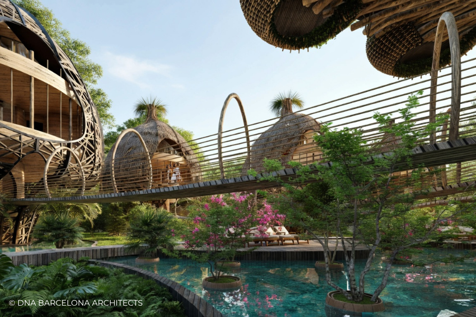 The “Life Tree” in Tulum was born from the clients desire to generate a new experience. From a conceptual point of view, in DNA we always aim towards the fusion between art and technology and in this case, we sought the fusion between nature and architecture, which generates the word, as we call it in DNA, “Archi-Nature”. In this way, we take inspiration from the bird’s nests, and from them our design process in DNA begins. This project was more about embracing nature and the jungle in Tulum, rather than the ocean, therefore an iconic project was generated from the desire to create a tree of life, with a centre from which everything revolves around, and where ten nests structures appear. The experience is enhanced by wandering through the place through walk ways, climbing from a walkway to the top of the trees and then you are in your own nest. In the end, today`s tourism has to be more oriented to nature and how to live those unique experiences, so that you return home nourished by exceptional experiences.