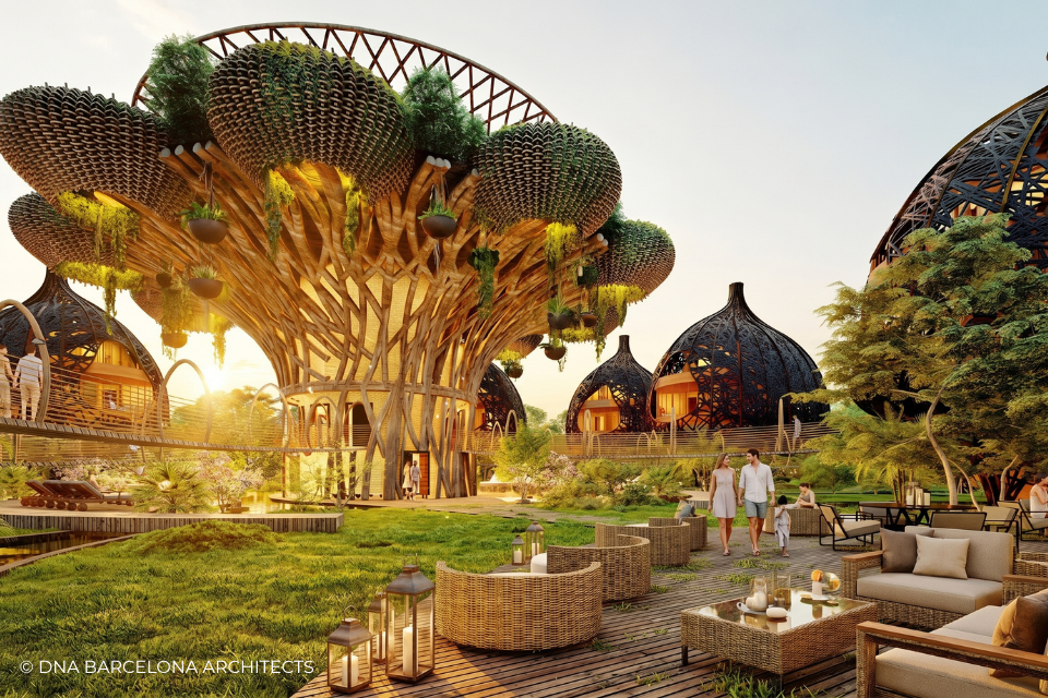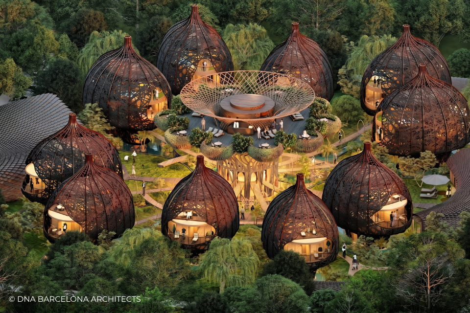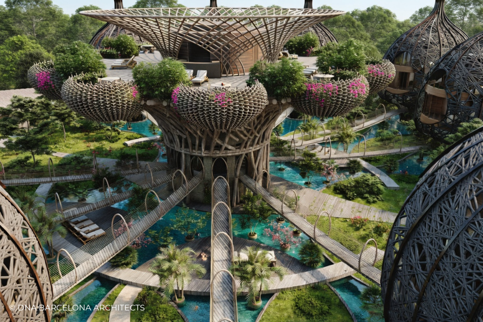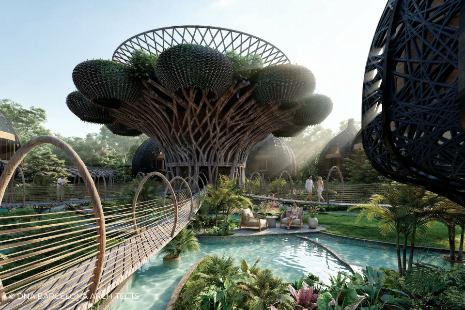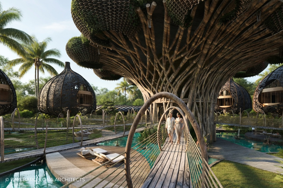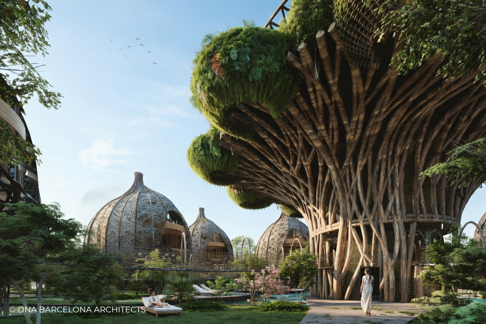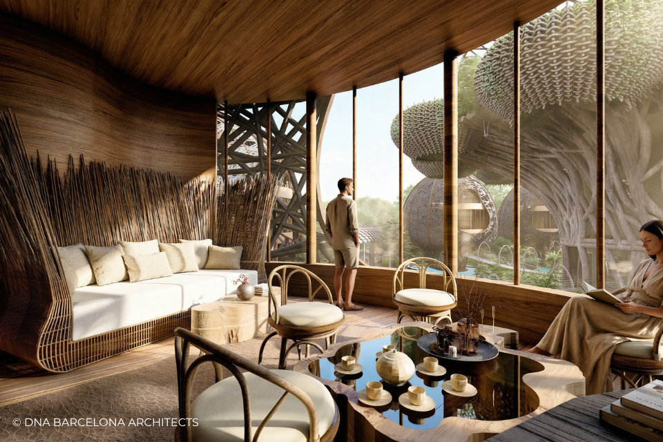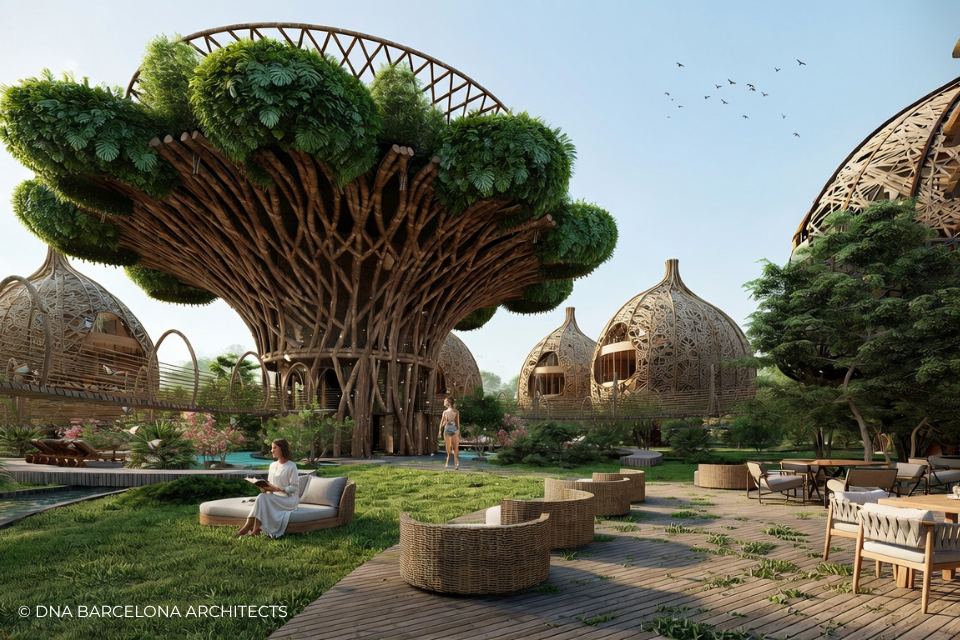 The “Life Tree” in Tulum was born from the clients desire to generate a new experience. From a conceptual point of view, in DNA we always aim towards the fusion between art and technology and in this case, we sought the fusion between nature and architecture, which generates the word, as we call it in DNA, “Archi-Nature”. In this way, we take inspiration from the bird’s nests, and from them our design process in DNA begins. This project was more about embracing nature and the jungle in Tulum, rather than the ocean, therefore an iconic project was generated from the desire to create a tree of life, with a centre from which everything revolves around, and where ten nests structures appear. The experience is enhanced by wandering through the place through walk ways, climbing from a walkway to the top of the trees and then you are in your own nest. In the end, today`s tourism has to be more oriented to nature and how to live those unique experiences, so that you return home nourished by exceptional experiences.